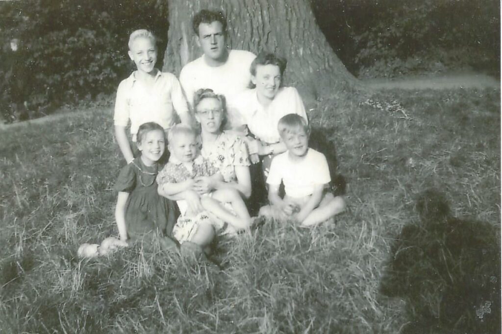 Deze foto dateert uit 1937, we zien Corneel op de arm van zijn zuster zitten.