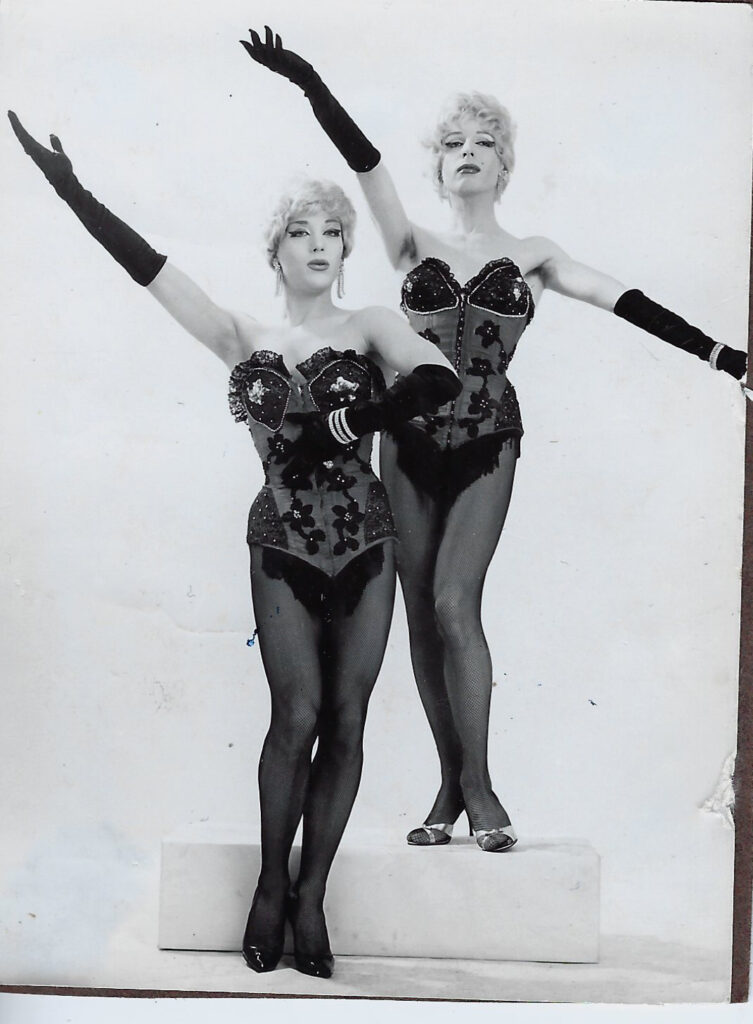 Foto 1968 in Nice (Frankrijk) Cabaret Folies met vlnr twee barbediendes, dan Corinne en tenslotte de eigenares, Zazie woont in 1968 in Cannet-Plage (Frankrijk)