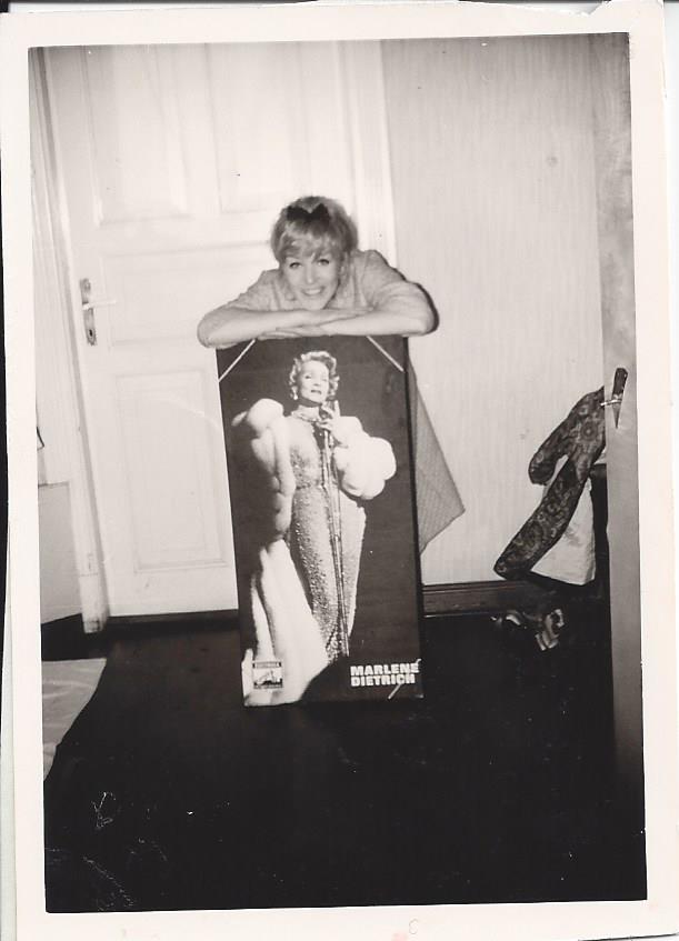 Foto Corinne 1969 in Duitsland met portret van Marlène Dietrich