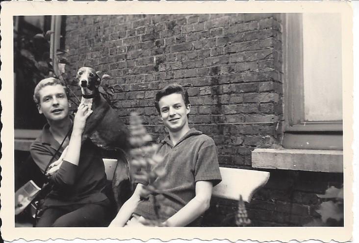 Foto uit 1958 François met zijn hondje Julia en zijn vriend Robert d’Anvers in de dansschool